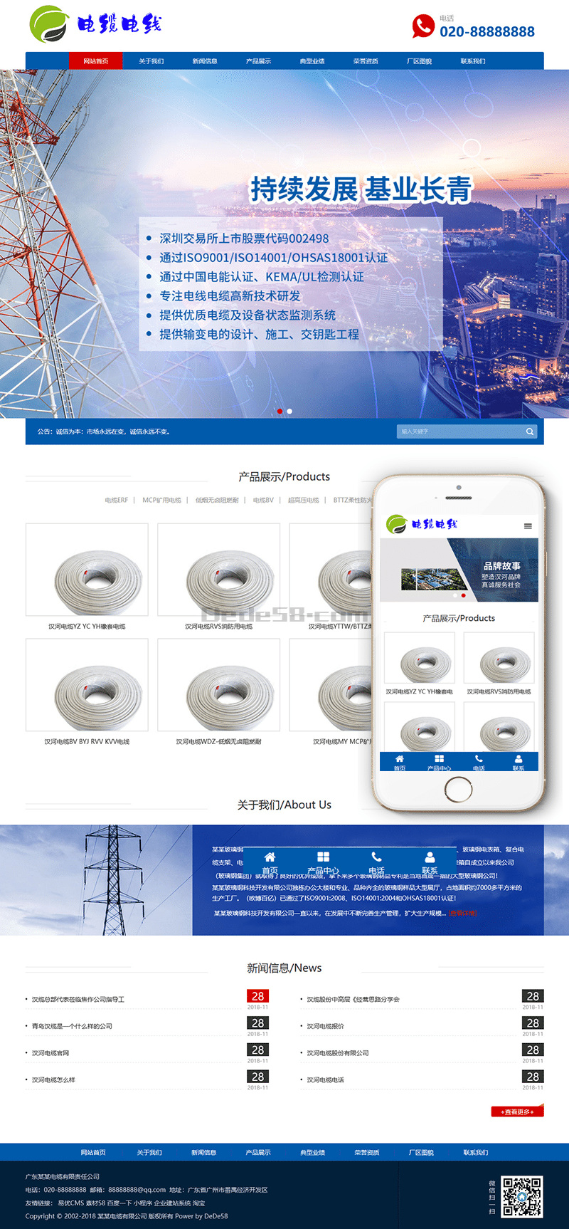 响应式电缆电线类网站织梦模板(自适应手机端)+PC+wap+利于SEO优化