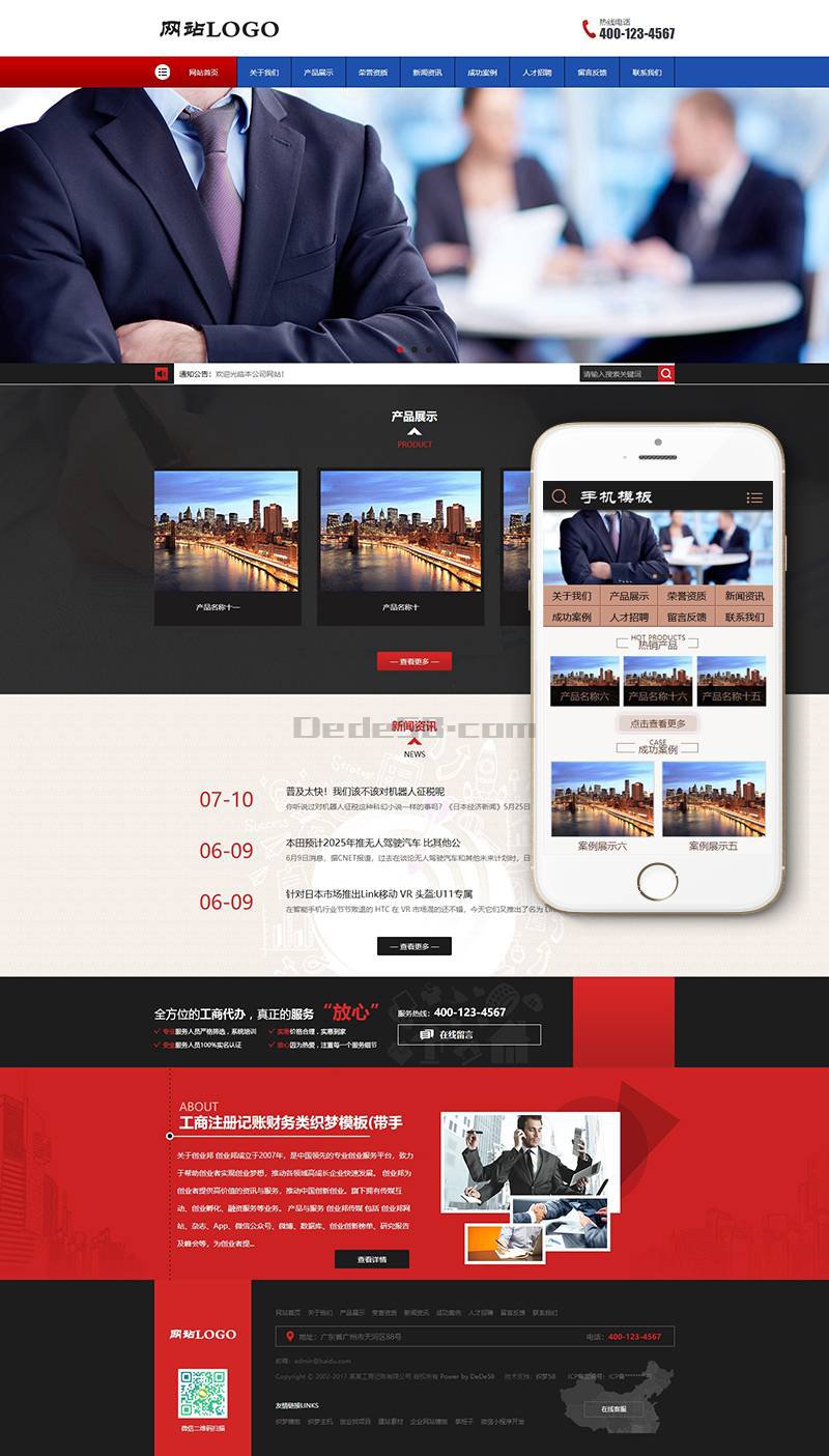 工商注册记账财务类织梦模板(带手机端)+PC+移动端+利于SEO优化