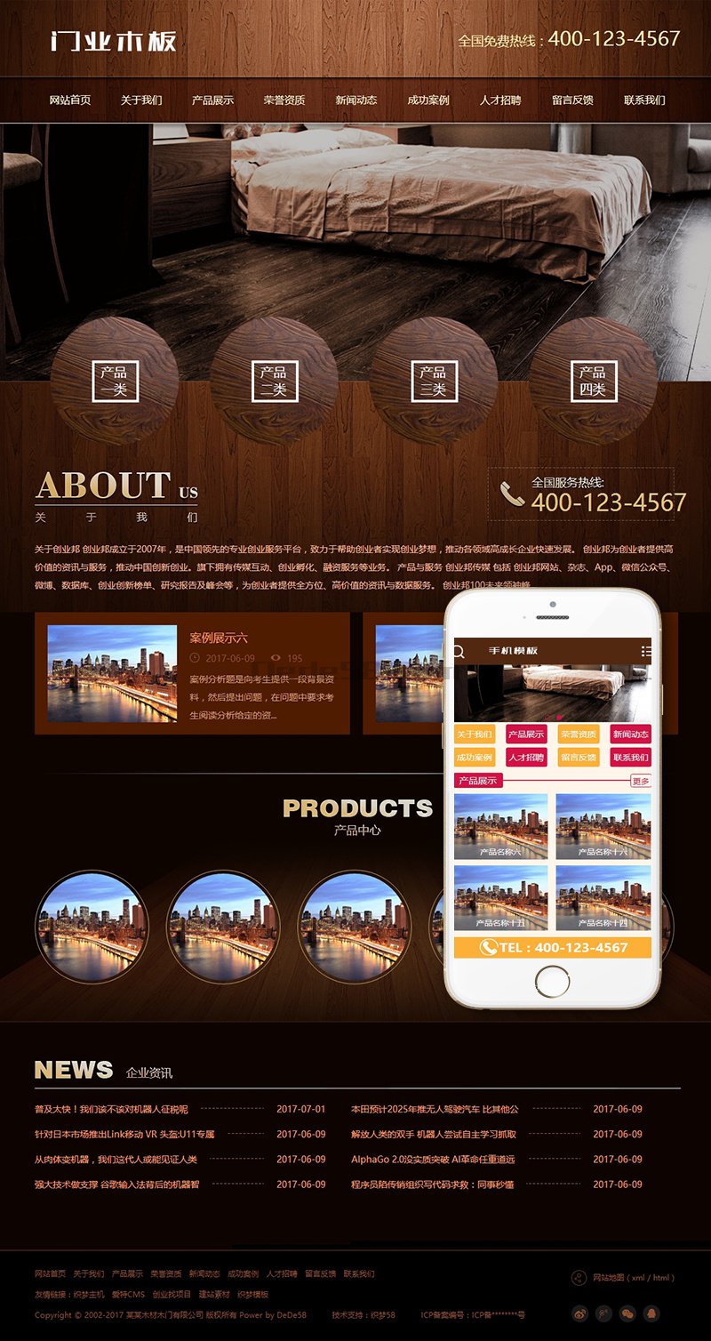 木材门业木板类网站织梦模板(带手机端)+PC+移动端+利于SEO优化