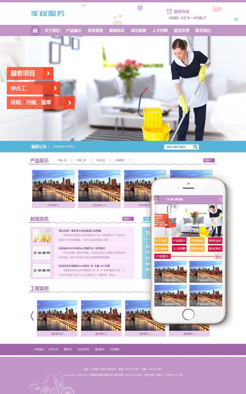 保姆月嫂搬家家政服务类网站织梦模板(带手机端)+PC+移动端+利于SEO优化