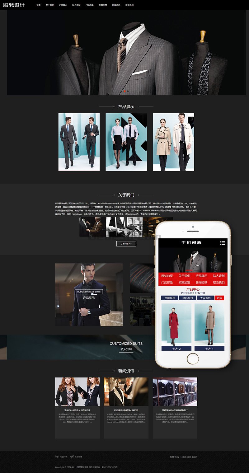黑色西装服饰定制类织梦模板(带手机端)+PC+移动端+利于SEO优化