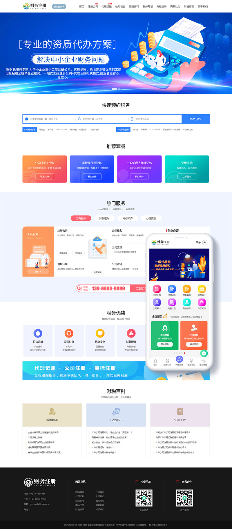 财务公司注册记账类网站织梦模板(带手机端)+PC+移动端+利于SEO优化