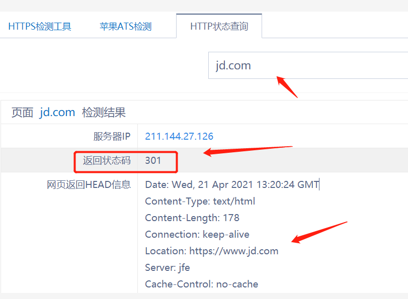 但这里要注意,一定是301重定向跳转,并不是简简单单的跳转。正确的设置301,返回的http状态码应该是301。例如下截图: