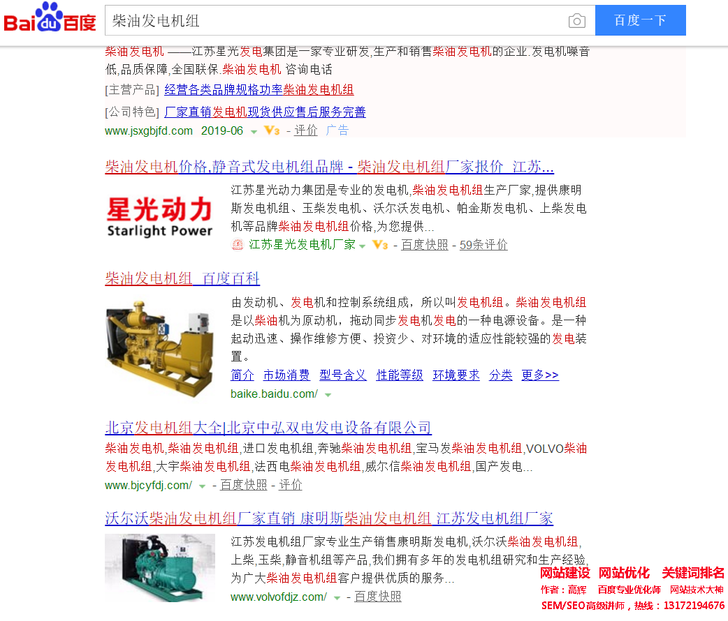 关键词‘柴油发电机’百度关键词优化案例如下图