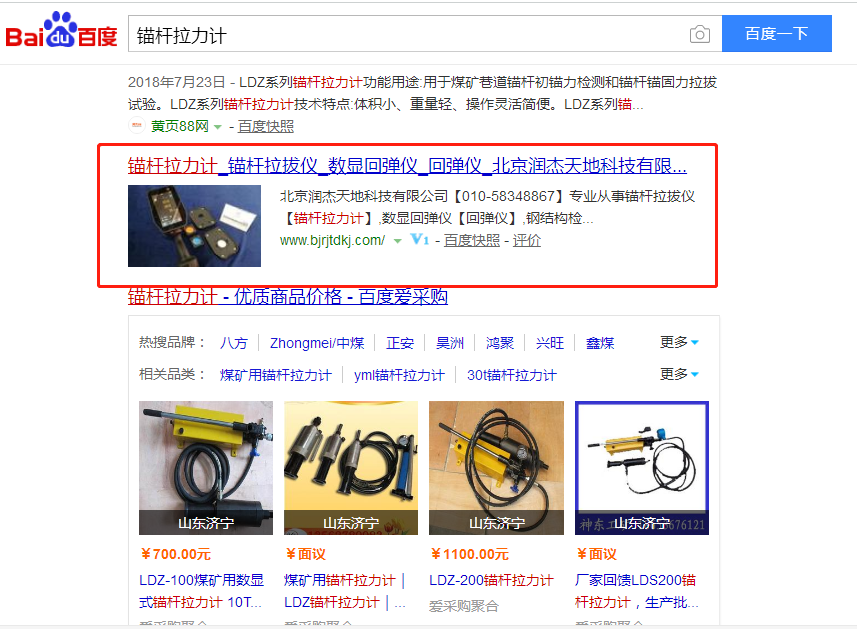 优化的锚杆拉力计,锚杆拉拔仪均在百度排名首页,日均流量300多,效果明显
