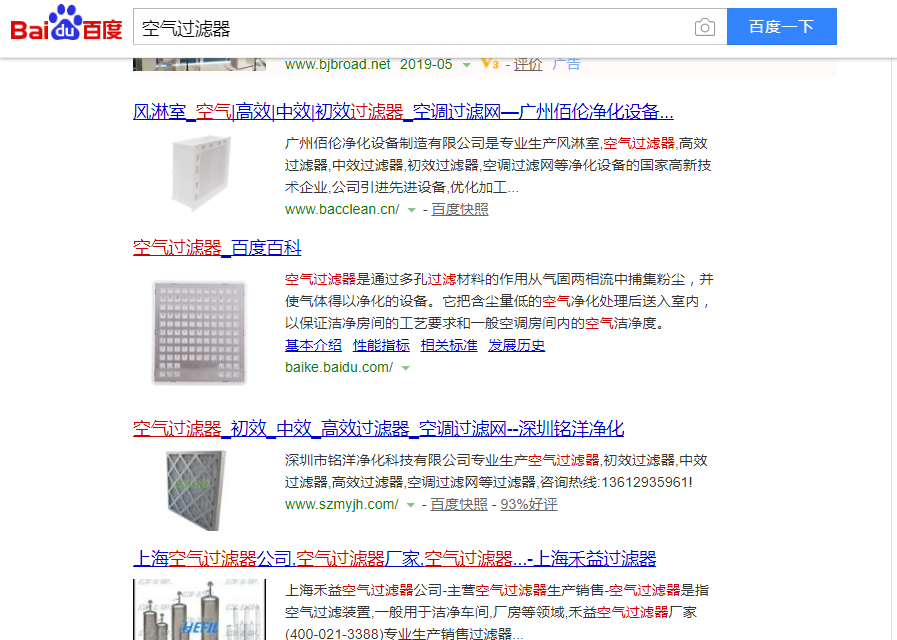 网站优化seo关键词‘空气过滤器’通过白帽手法做到百度首页如下图所示: