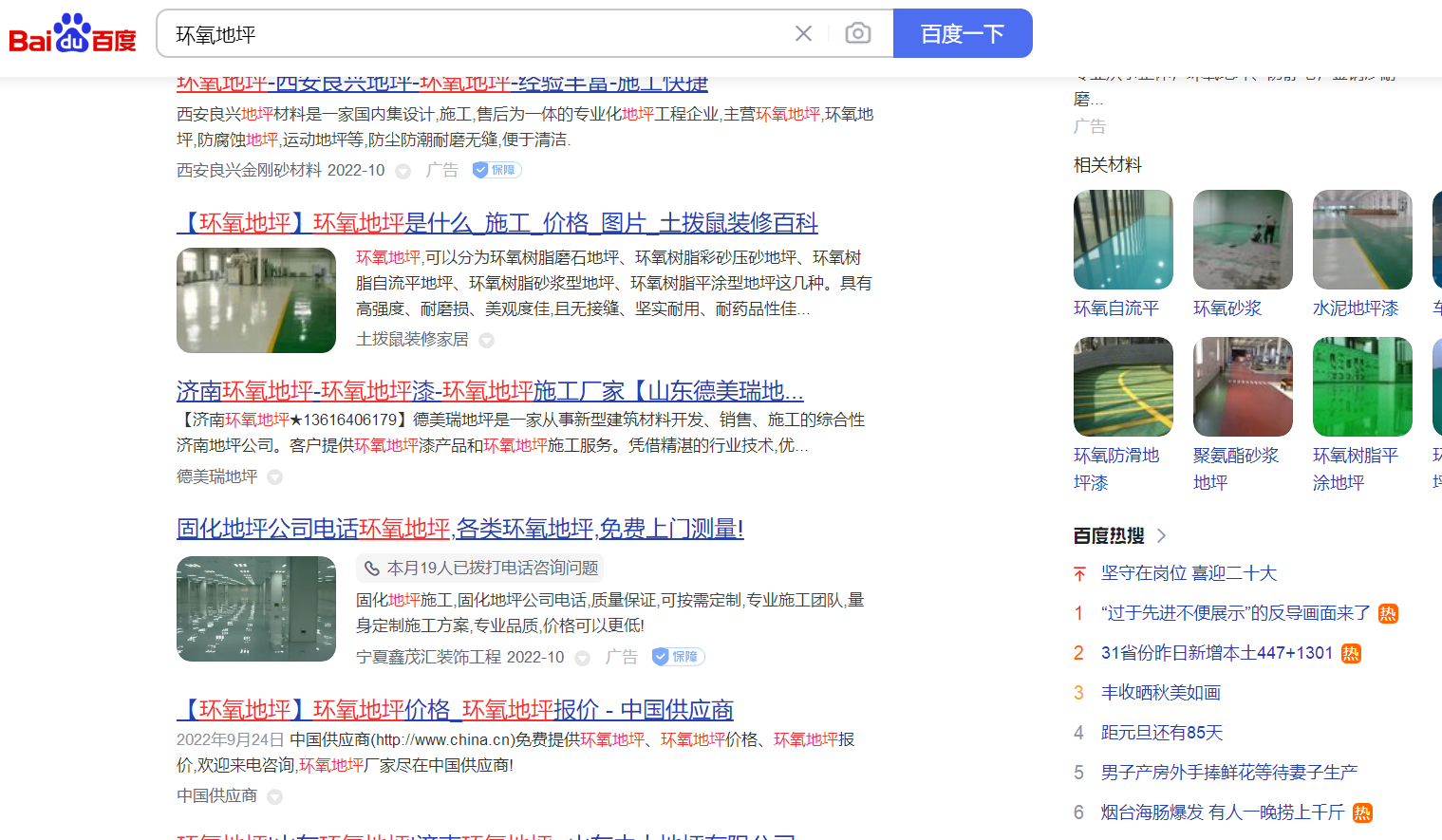 环氧地坪’通过百度快照优化网站到百度首页案例,