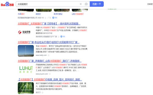 / 关键词‘太阳能路灯’通过百度快照优化网站到百度首页案例