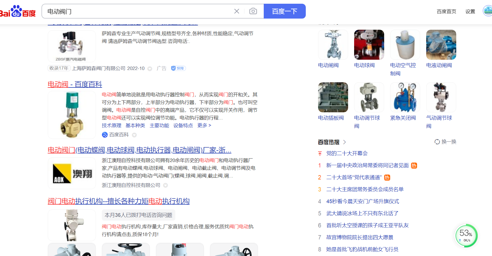 关键词‘电动阀门’通过百度快照优化网站到百度首页案例,电动阀门