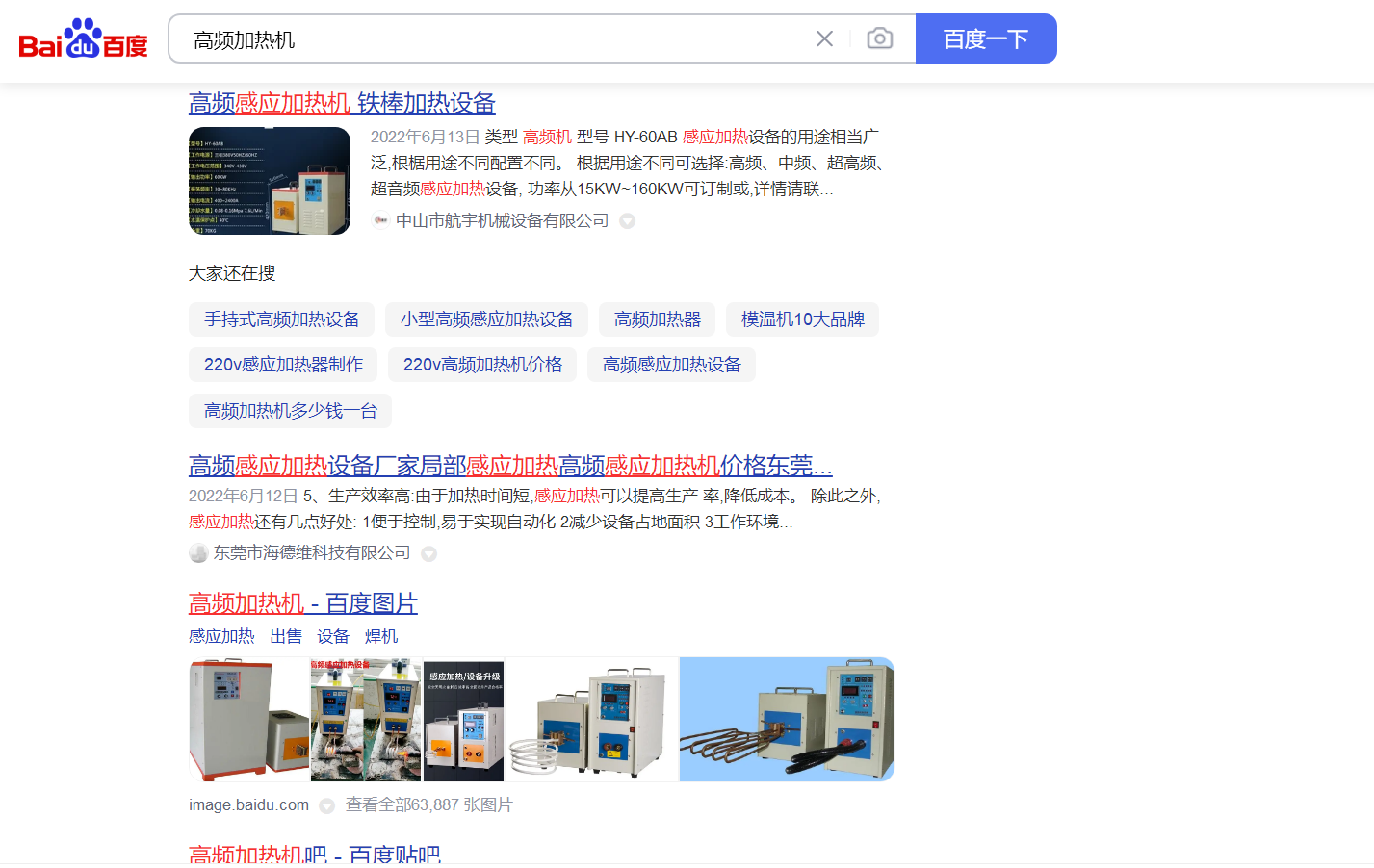 关键词‘高频加热机’通过百度快照优化网站到百度首页案例,高频加热机