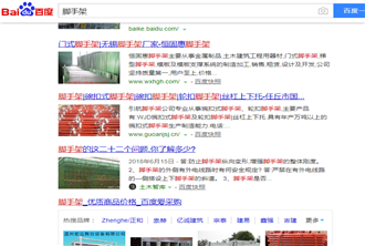 百度优化关键词脚手架seo网站优化排名百度首页案例如下图所示: 脚手架 是为了保证各施工过程顺利进行而搭设的工作平台。按搭设的位置分为外 脚手架 、里 脚手架 ;按材料不同可...