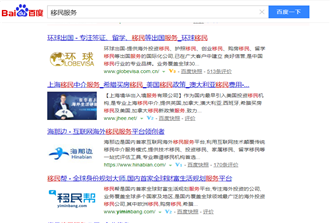 关键词移民服务优化百度首页排名通过seo方法优化案例如下图所示:...