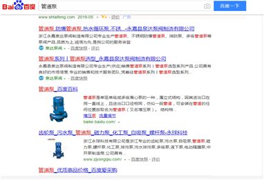 网站优化关键词管道泵做到百度首页,seo网站优化案例如下图所示: 管道泵 是单吸单级或多级离心泵的一种,属立式结构,因其进出口在同一直线上,且进出口口径相同,仿似一段 管...