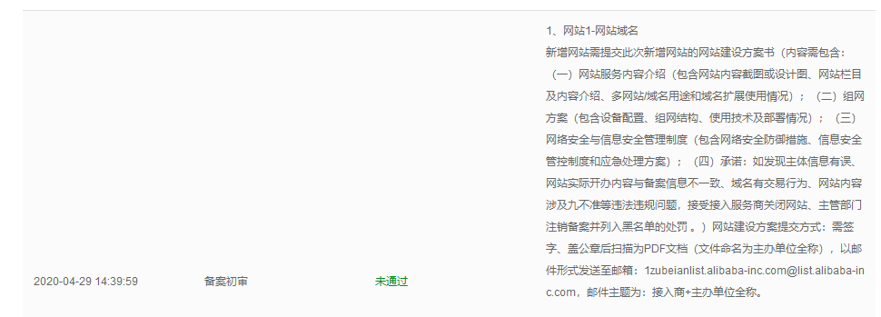 新增网站需提交此次新增网站的网站建设方案书(内容需包含:(一)网站服务内容介绍(包含网站内容截图或设计图、网站栏目及内容介绍、多网站/域名用途和域名扩展使用情况);(二)组网方案(包含设备配置、组网结构、使用技术及部署情况);(三)网络安全与信息安全管理制度(包含网络安全防御措施、信息安全管控制度和应急处理方案);(四)承诺:如发现主体信息有误、网站实际开办内容与备案信息不一致、域名有交易行为、网站内容涉及九不准等违法违规问题,接受接入服务商关闭网站、主管部门注销备案并列入黑名单的处罚 。)网站建设方案提交方式:需签字、盖公章后扫描为PDF文档(文件命名为主办单位全称),以邮件形式发送至邮箱:1zubeianlist.alibaba-inc.com@list.alibaba-inc.com,邮件主题为:接入商+主办单位全称。快速网站备案系统【电话同微信:13172194676】专业从事网站备案、ICP备案、加急网站备案、工信局网站备案提交、代办网站备案、疑难网站备案、网站备案注销、网站备案变更、公安备案、网监备案、网站ICP证,欢迎来电咨询。专业的事交给专业的人来办,为您省时省力,每个环节我们为您把控,12年服务经验,为您快速解决备案问题!icp备案、代办网站备案、公安网监备案、加急网站备案、变更网站备案、疑难网站备案、注销网站备案、网站备案变更、网站备案注销、经营性ICP证,EDI证,全网sp证,ISP证,网络文化经营许可证,互联网药品信息服务许可证,广播电视节目制作经营许可证。