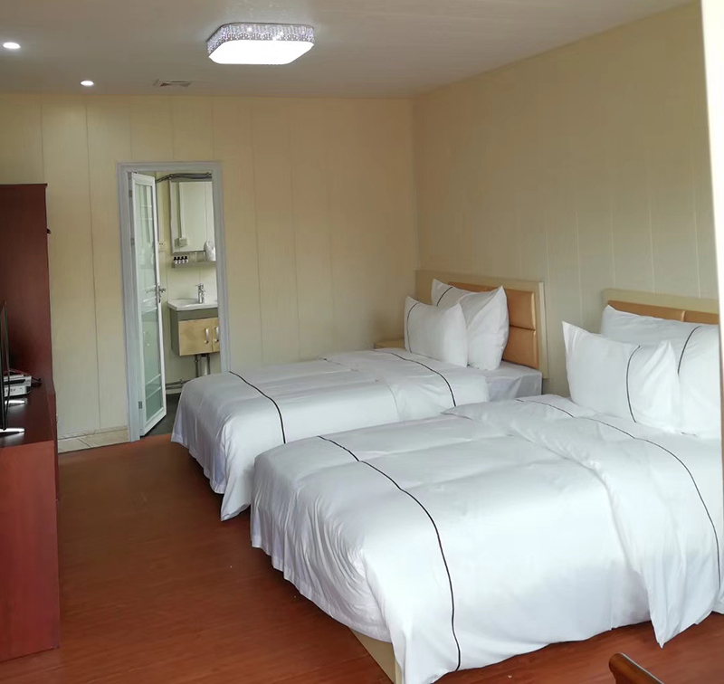 住人集装箱房是以单个箱体为单位,密封性较高,六面封闭,墙板可根据需求设置窗户,对场地环境要求低,不用预做基础,不必需要大场地,方便快捷,两三天的安装时间过后即可迅速使用。