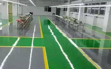 3、车间内的环氧地坪上行车要注意速度不可过快,以免争刹车行为造成剪切发热过高,从而使得环氧地坪漆瞬间软化(环氧地坪漆的软化温度在80℃左右,因此其使用环境温度一般控制在50℃以下)并在剪切力的作用下产生难以清洗的污痕.