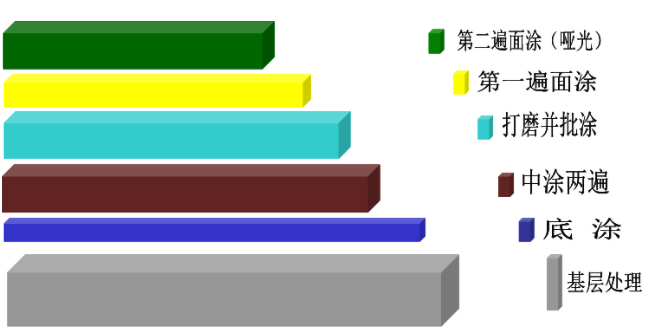 待中涂完全干燥后进行打磨处理。基材上小裂缝、地面上裂损处可用环氧树脂批覆,得一完整平滑的表面后方可施工面涂。