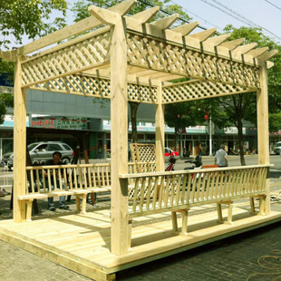 防腐木是将普通木材经过人工添加化学防腐剂之后,使其具有防腐蚀、防潮、防真菌、防虫蚁、防霉变以及防水等特性。国内常见的防腐木主要有两种材质:俄罗斯樟子松和北欧赤松。能够直接接触土壤及潮湿环境,经常使用在户外地板,工程,景观,防腐木花架等,供人们歇息和欣赏自然美景,是户外地板、园林景观、木秋千、娱乐设施、木栈道等的理想材料,深受园艺设计师的青睐,不过随着科学技术的发展,防腐木已经非常环保,故也经常使用在室内装修,地板及家具中,室内装修设计师也非常喜欢防腐木。还有一种没有防腐剂的防腐木-深度炭化木,又称热处理木。炭化木是将木材的有效营养成分炭化,通过切断腐朽菌生存的营养链来达到防腐的目的。防腐木花架是木材进行防腐处理后,拥有防腐、防虫、防霉等性能后所制成的园林设施。防腐木凉亭,是指用防腐木组建而成的凉亭。所使用的防腐木是经过特殊防腐工艺处理后的木材,具有防腐烂、防白蚁、防真菌的功效。故此类凉亭稳定性强、使用期限长、性价比高。防腐木地板,是将普通木材经过防腐处理加工后成品名,普通木材地板在经过防腐处理之后使之性能大大的提升,达到了防腐、防霉、防蛀、防白蚁的作用。现今防腐木地板是户外使用最广泛的木材之一。专门用于户外环境的露天木地板,并且可以直接用于与水体、土壤接触的环境中,是户外木地板、园林景观地板、户外木平台、露台地板、户外木栈道及其他室外防腐木凉棚的首选材料。防腐木_防腐木木屋_防腐木凉亭_防腐木花架【防腐木厂家城市导航: