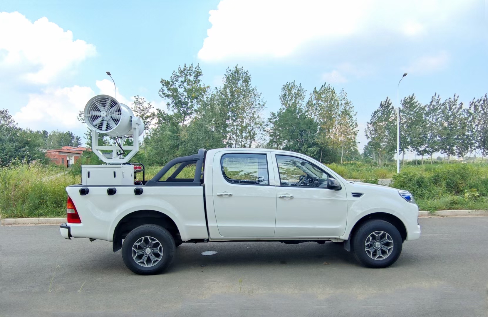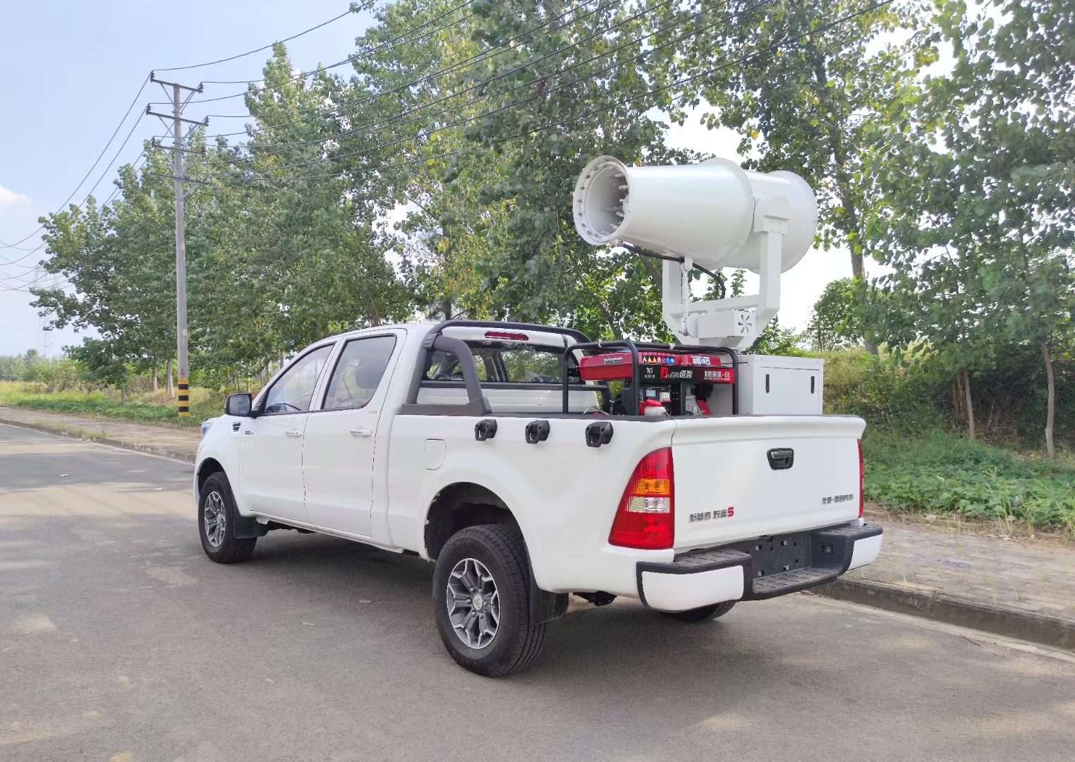 4.福田皮卡雾炮消毒车多用:紧急情况防役消杀,宣传动员,拖拽救援,平时净化空气,防霾疆尘,灵活载货等
