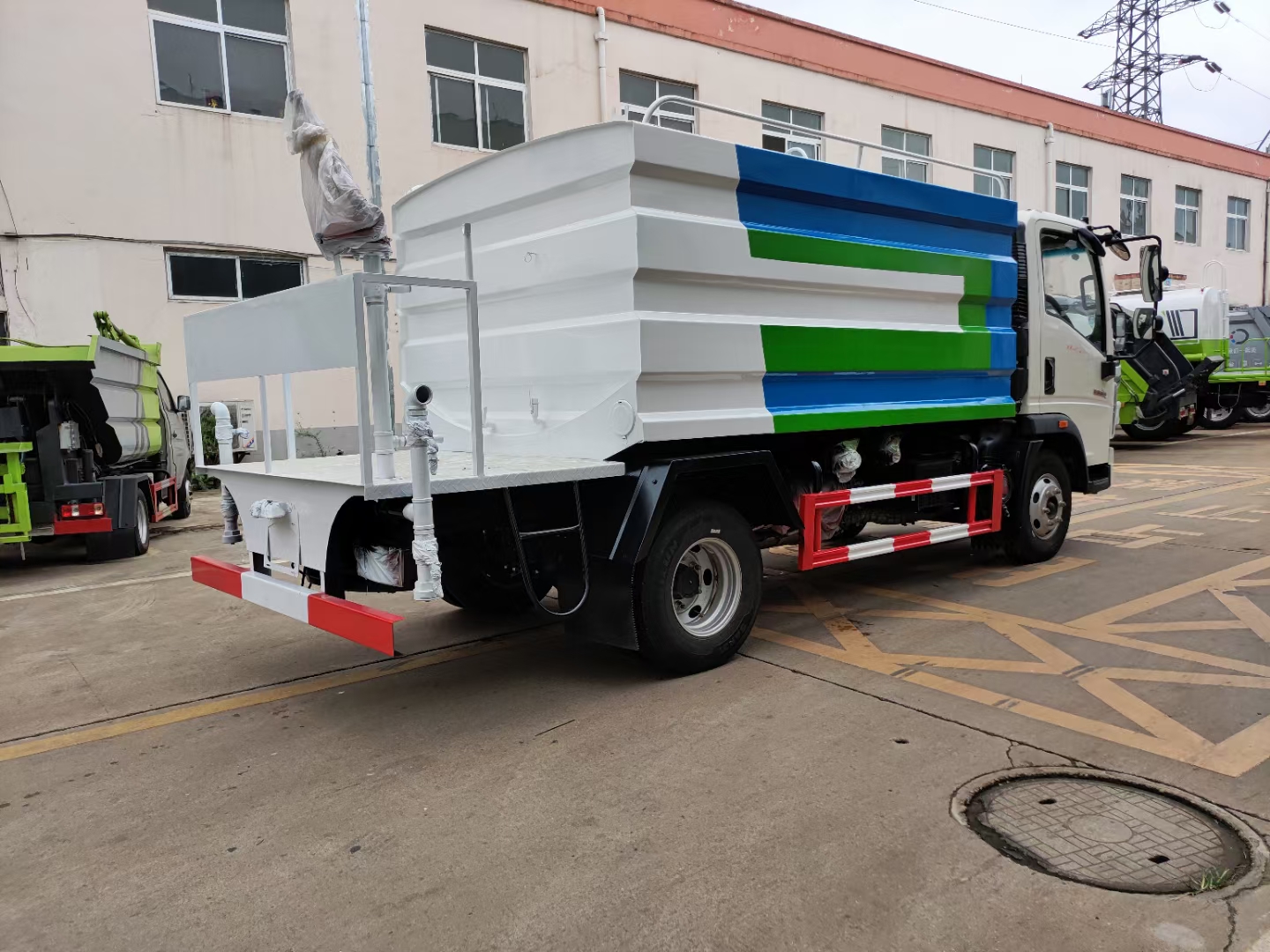 蓝牌雾炮车顶部双置物架、三处充电位、真皮座椅、断气刹、120升铝合金油箱、配置丰富超出想象!