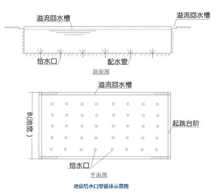 因此,竞赛游泳池、训练游泳池、高档宾馆和俱乐部(会所)游泳池宜采用这种循环水流组织方式。但这种循环方式建设费用较高,管道施工安装和维护较困难。
