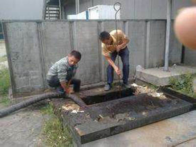 1.用铁钩打开化粪池的盖板,再用长竹杆(8m)搅散化粪池内杂物结块层。