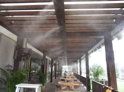 没有场地限制,室内和室外均可使用,易于安装。雾的粒径为3-10微米,无水,餐厅喷雾冷却设备,无凝结,地面不会湿润。