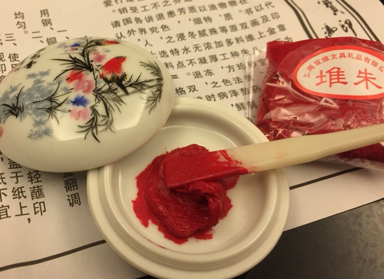 如果没有质地细腻的的印泥,就不能将印章的风神充分的显示出来,印迹也会大为逊色许多,一般来讲,如果是大点的字的话多用殷红色的印泥,然而小字往往用朱红印泥,特别强调一点的是在字帖黑底上的印迹必须要用朱红印泥了。