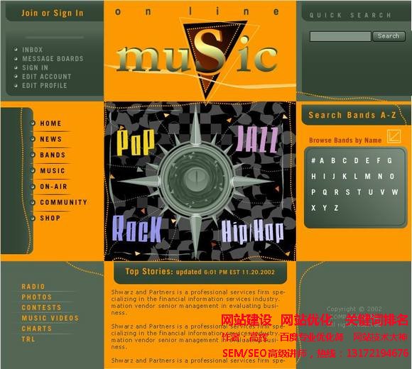 娱乐休闲音乐模板+网站建设+利于SEO关键词优化