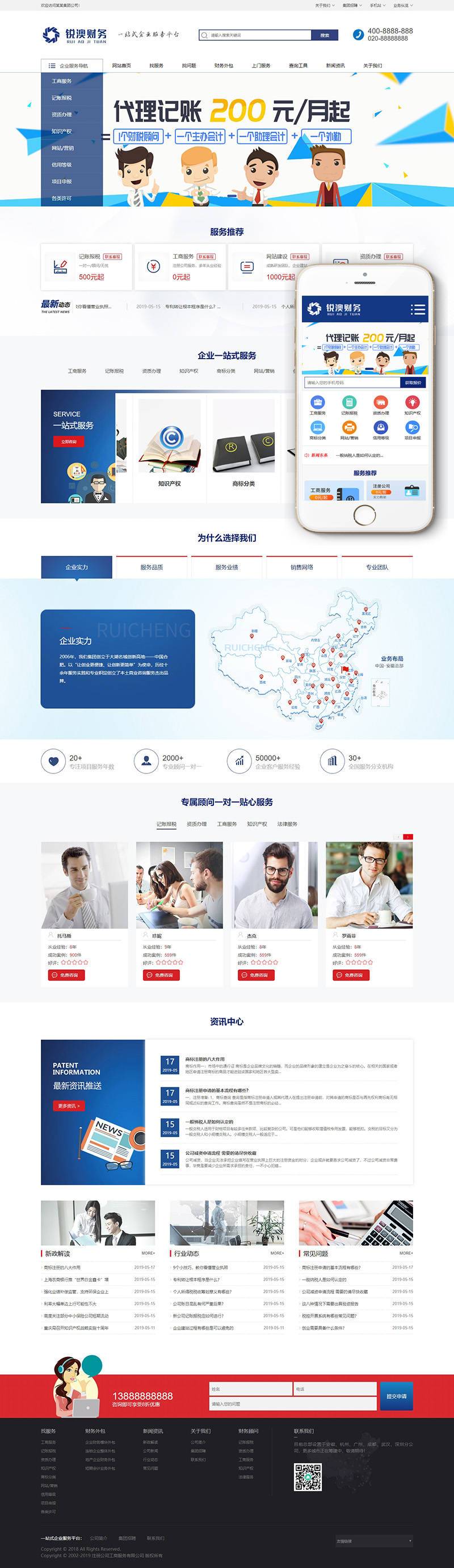 财务注册公司工商服务类企业网站织梦模板(带手机端)+PC+移动端+利于SEO优化
