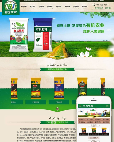 微生物肥料化肥类织梦模板(带手机端)+PC+移动端+利于SEO优化