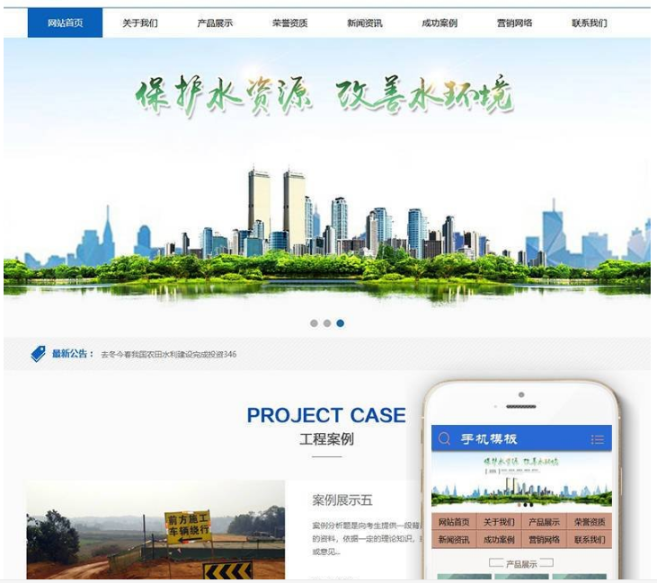 水利工程施工设计类织梦模板(带手机端)+PC+移动端+利于SEO优化