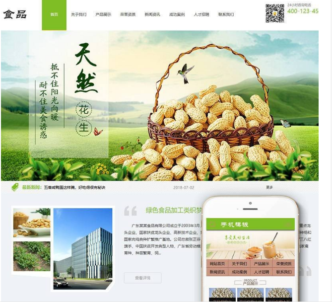 绿色食品加工类织梦模板(带手机端)+PC+移动端+利于SEO优化
