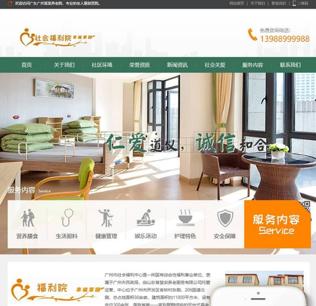 社会福利院养老院类织梦模板(带手机端)+PC+移动端+利于SEO优化