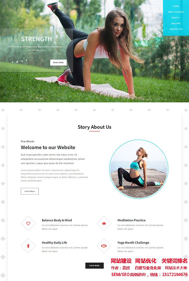 女性美体塑身网站模板,网站建设+利于SEO关键词优化