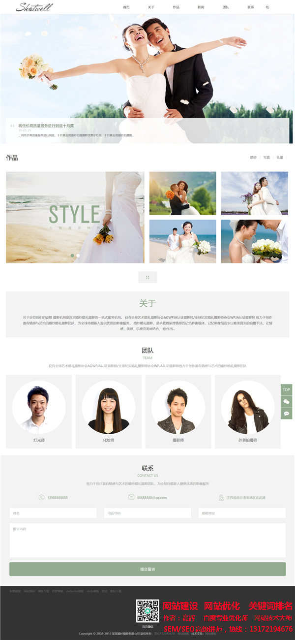 响应式婚纱照摄影类网站模板,网站建设+利于SEO关键词优化(注:选好网站模板,请联系客服,百度云盘下载提取网站模板)