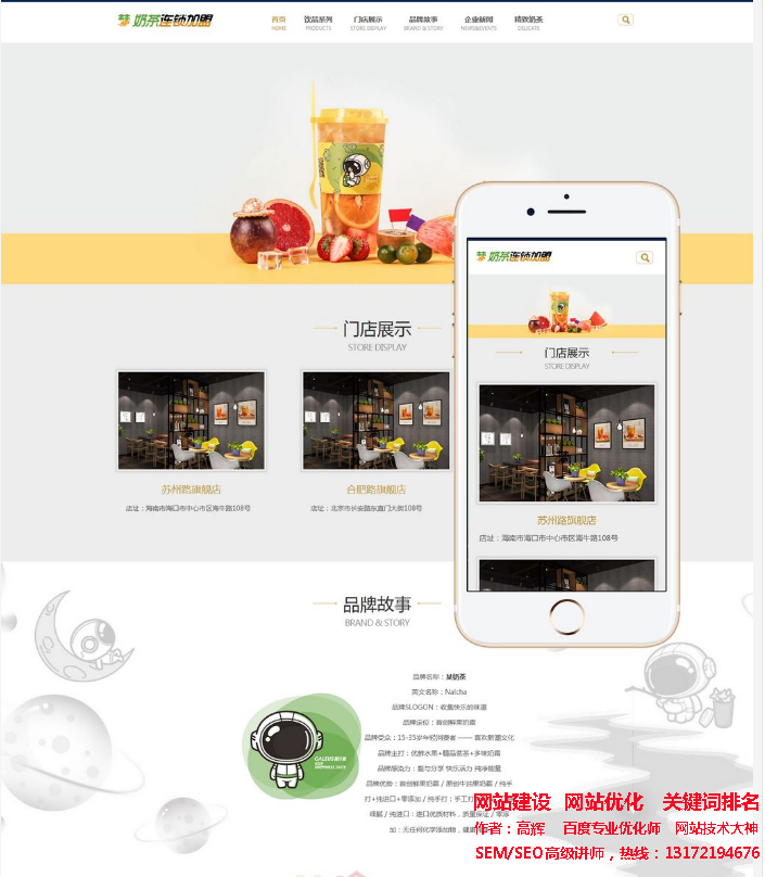 响应式奶茶食品餐饮加盟类网站模板,网站建设+利于SEO关键词优化(注:选好网站模板,请联系客服,百度云盘下载提取网站模板)