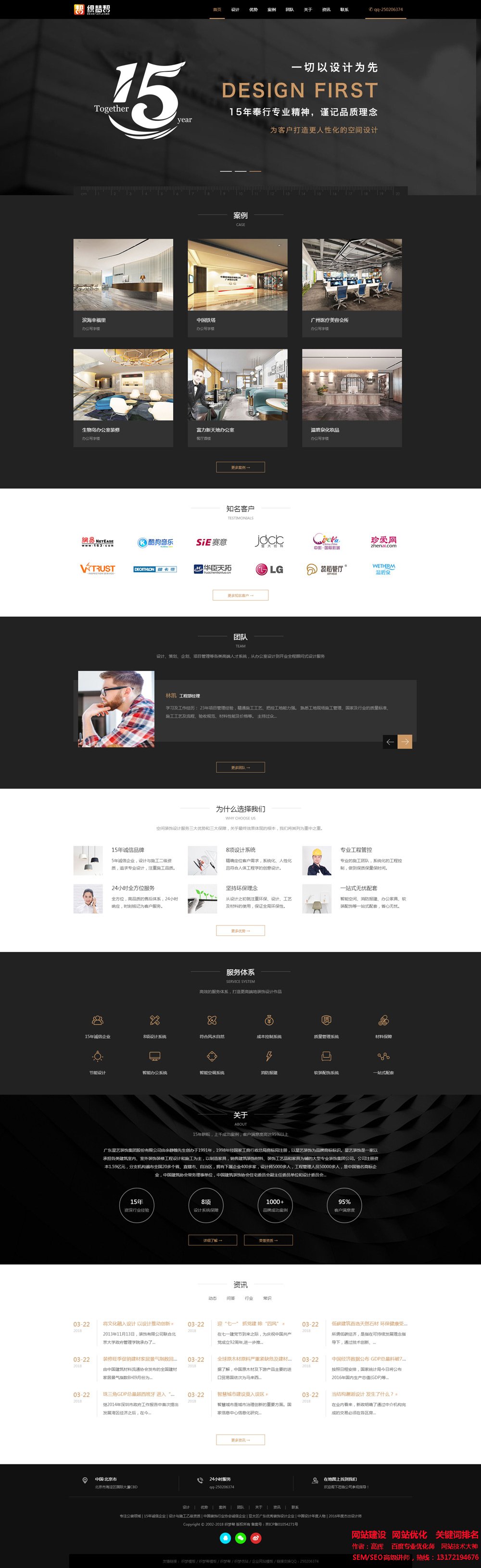 响应式黑色建筑装饰室内设计类(自适应手机端网站模板),网站建设+利于SEO关键词优化(注:选好网站模板,请联系客服,百度云盘下载提取网站模板)